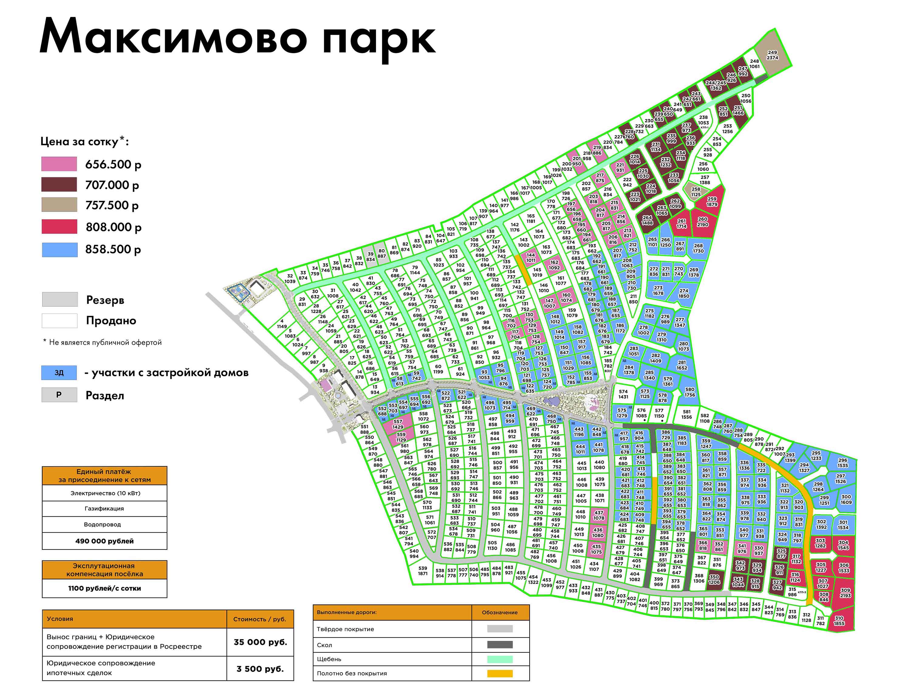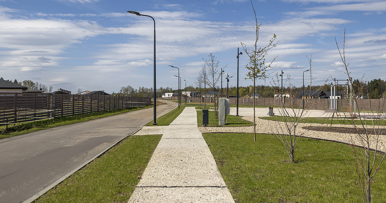 В поселке дорожная сеть с твердым покрытием: асфальтированная дорога